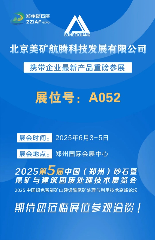 北京美礦航騰科技發展有限公司誠摯邀請您蒞臨 2025第五屆中國(鄭州)砂石及尾礦與建筑固廢處理技術展覽會,與我們共話行業前沿技術,探討合作新機遇!