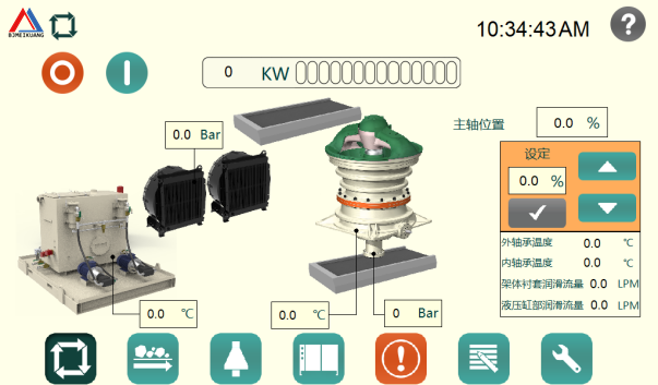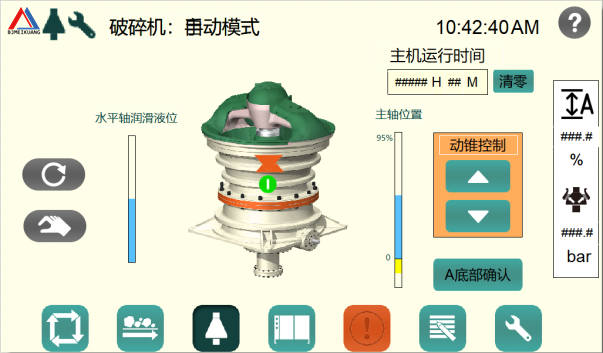 · 啟動液壓系統提升動錐,擴大排礦口;
